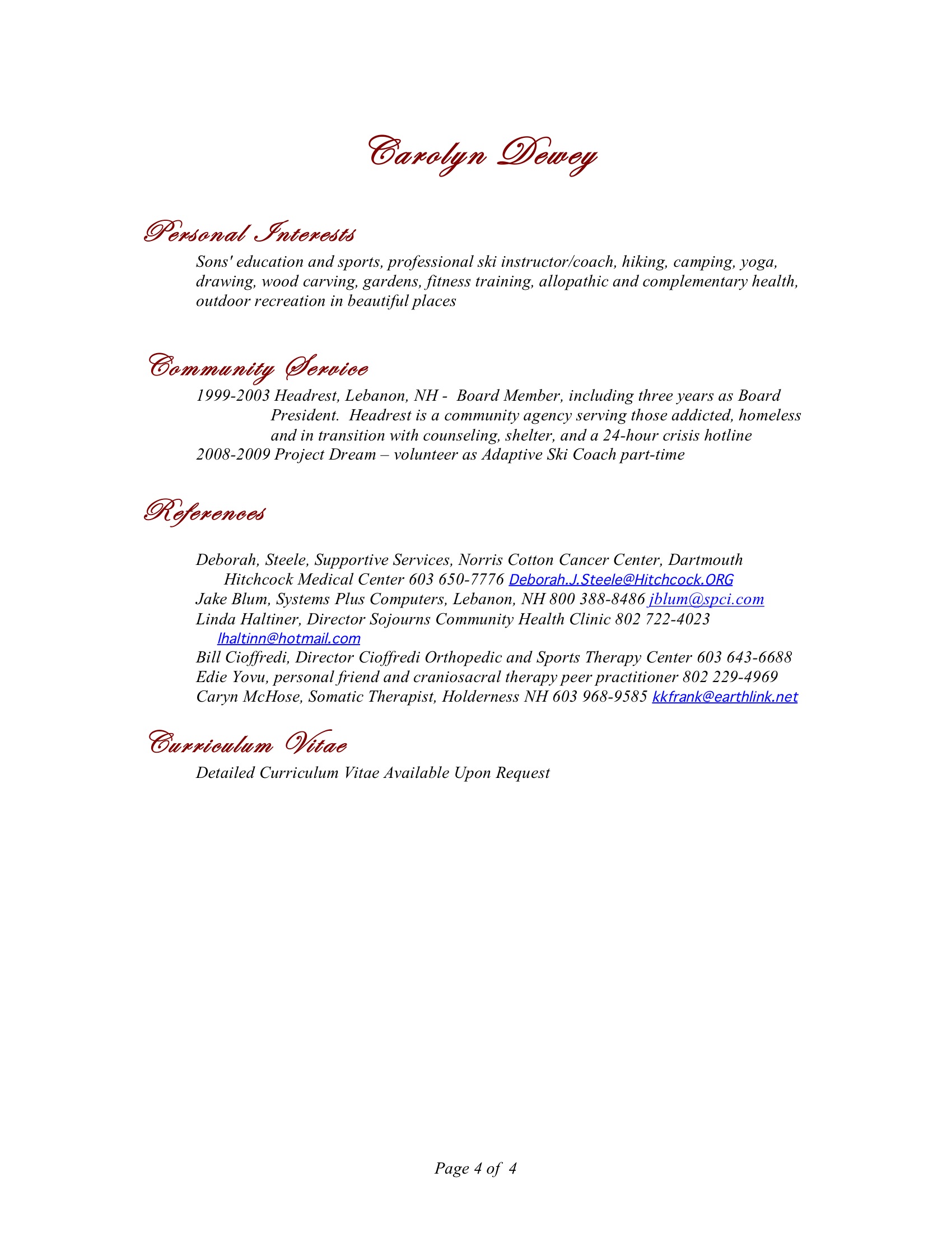Home | Carolyn Dewey | What I Treat | Services | Articles | Seminars | Links | Contact | Blog